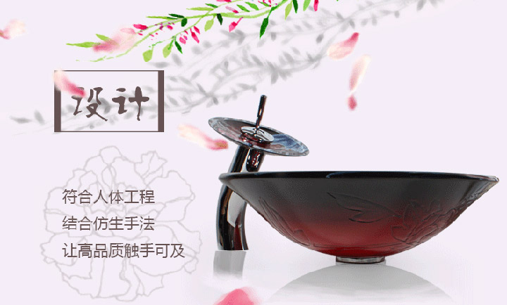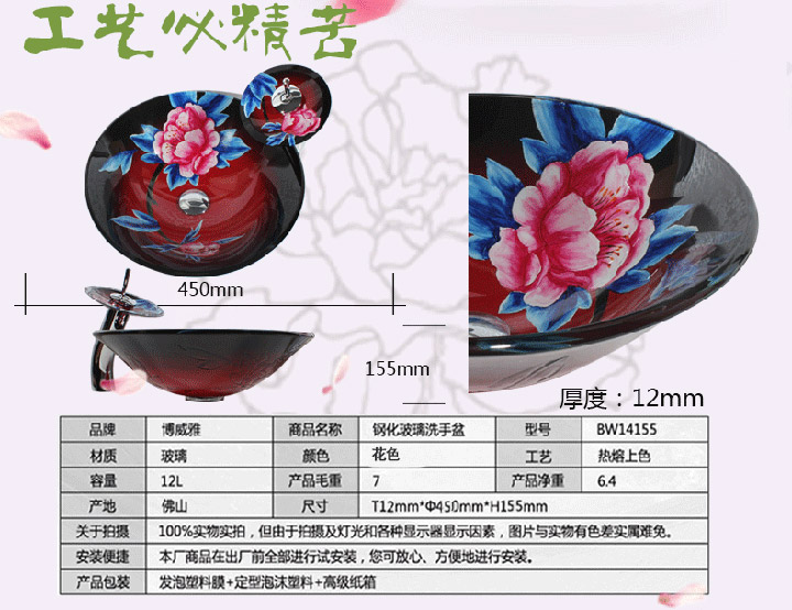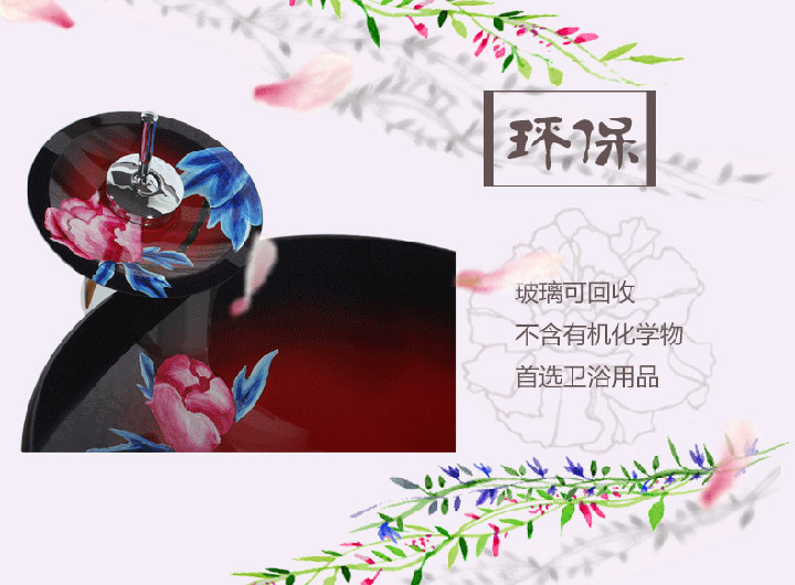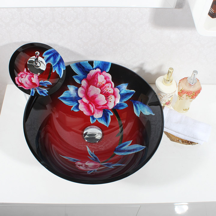 鋼化玻璃洗手盆-紅牡丹